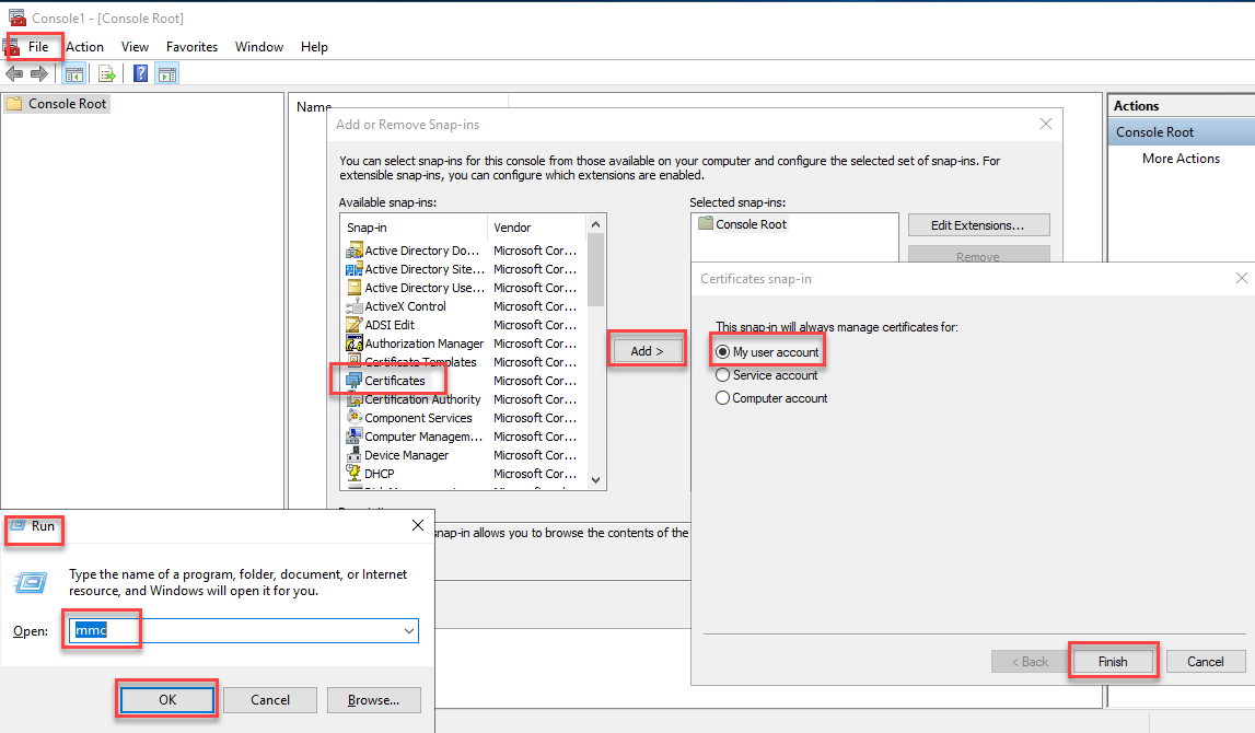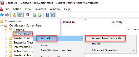 MMC konsolu kullanarak Certificates alanına geliyoruz.