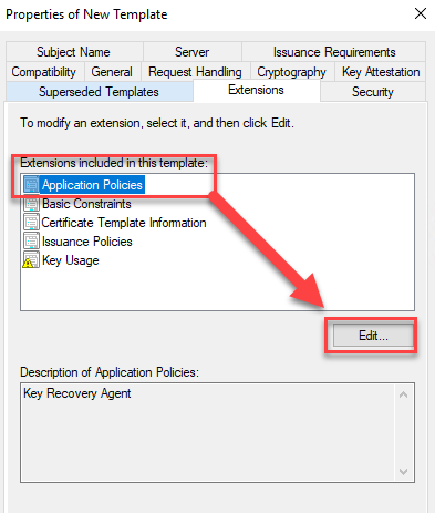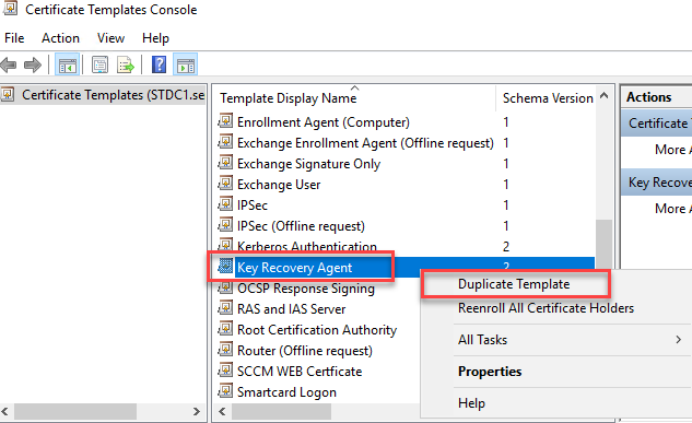 Key Recovery Agent Template’ini bularak sağ tık Duplicate Template diyoruz.