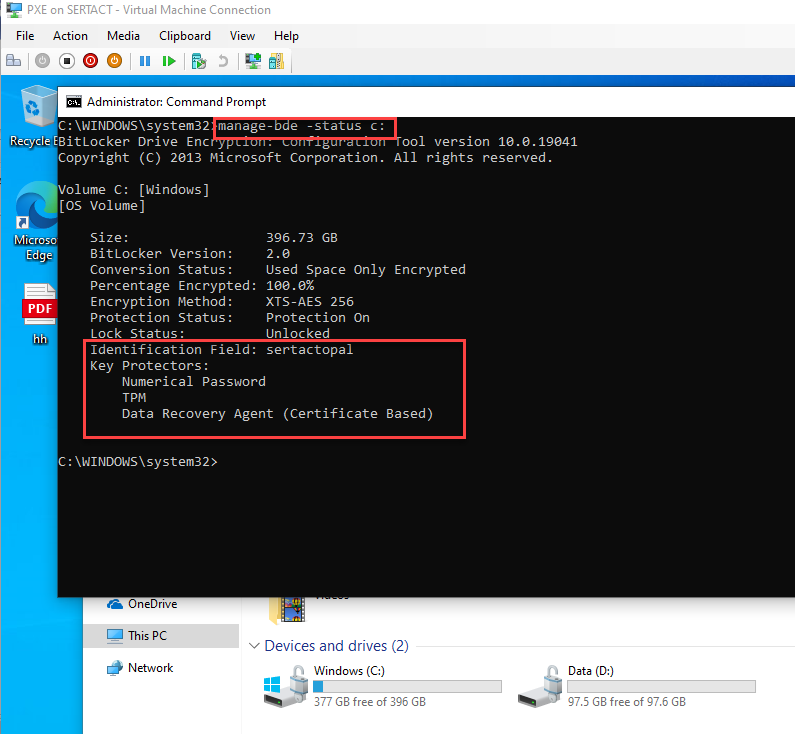 Kontrol için kullanacağımız bir diğer komut: manage-bde -protectors -get c: