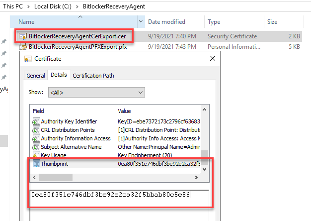 • Yazının başında export ettiğimiz PFX sertifikasını çok iyi saklayın, parolası güçlü olsun siz bile unutun . Anlaşılacağı üzere bu sertifika ile ortamdaki tüm bitlocker ile şifrelenmiş disk’lere erişilebilir.