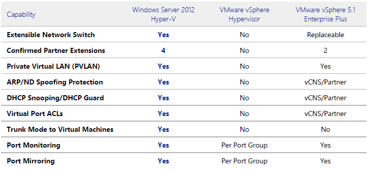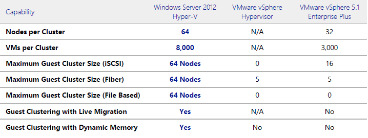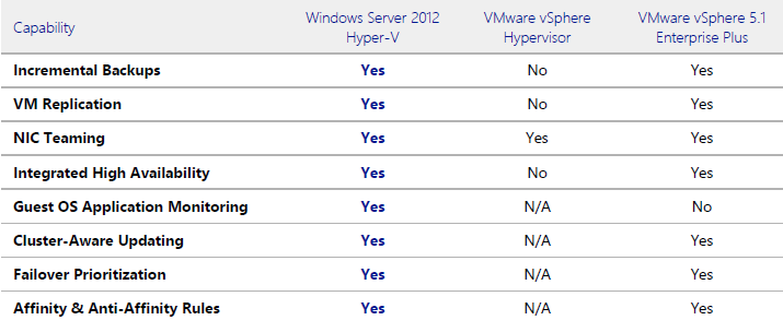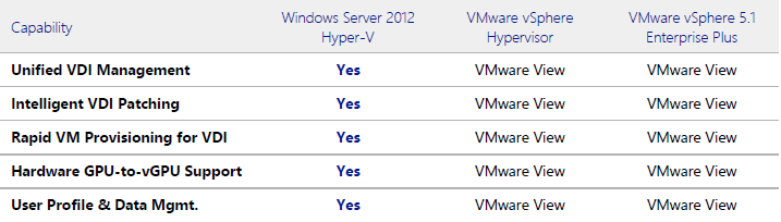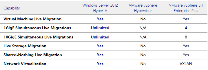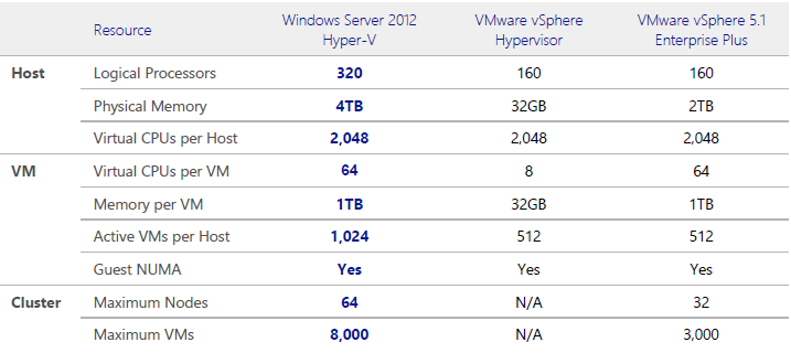 VMware vSphere 5.1 Karşılaştırma