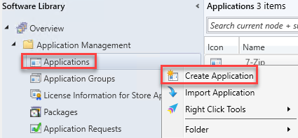 Daha sonra SCCM konsolundan Create Application komutu ile devam ediyoruz.