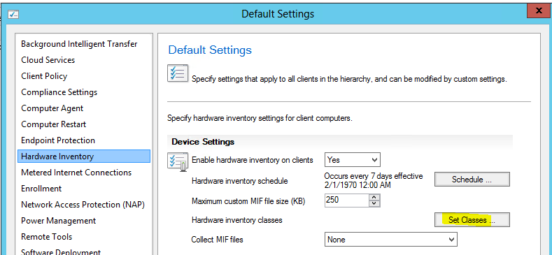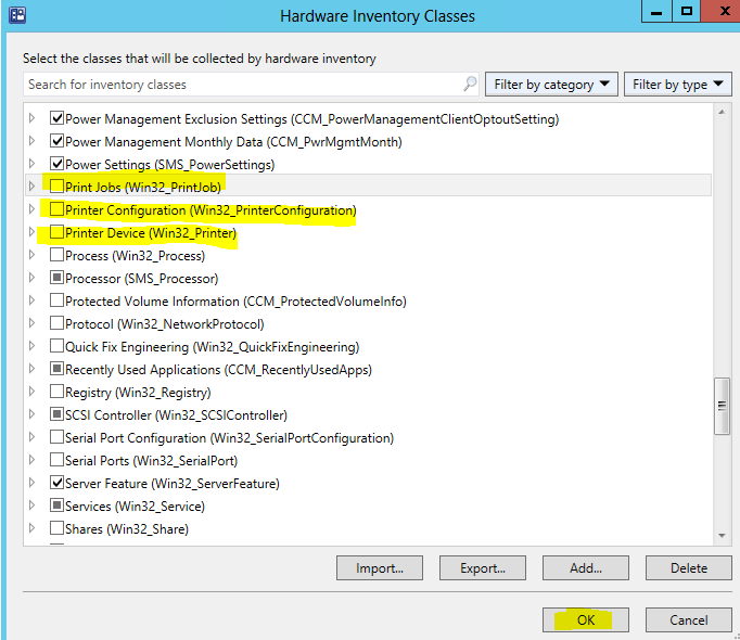 SCCM default olarak printer envanter bilgilerini toplamamaktadır. Bu bilgileri elde etmek için aşağıdaki adımları takip ederek ilgili WMI clasını eklememiz yeterli.