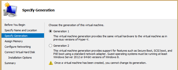 Bundan böyle sanal sunucularımızı oluştururken bize 1. mi yoksa 2. nesil olarak mı oluşturmak istediğimizi soran bir ekran geliyor olacak.